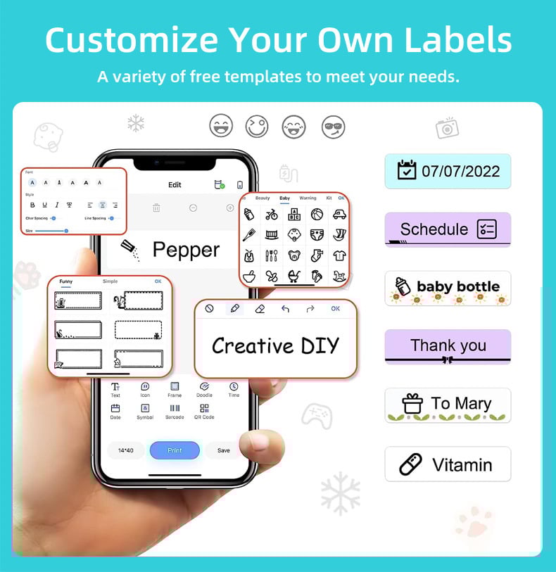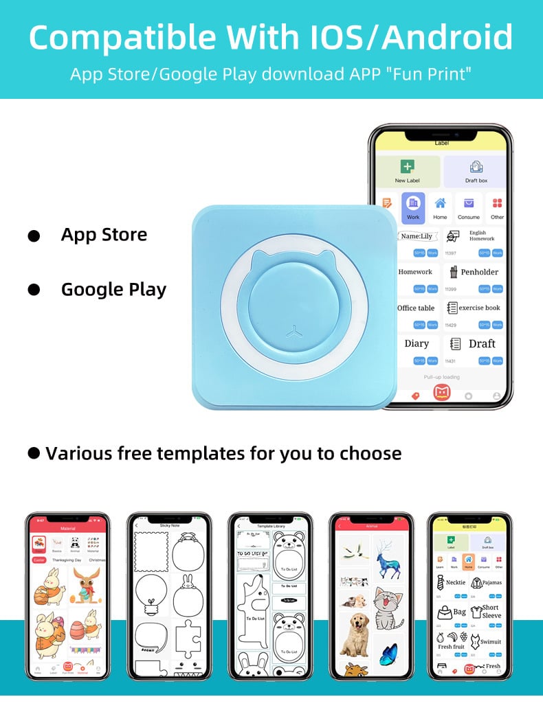 Skriv ut trÄdlöst frÄn din smartphone med en enkel Bluetooth-konfiguration. Kompatibel med de flesta appar för smidig utskrift av anteckningar, etiketter och bilder.