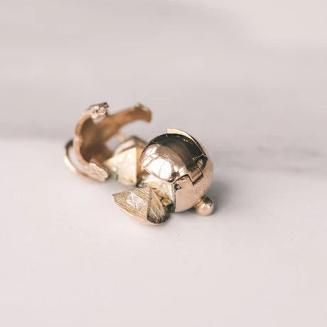 This pendant is a masterclass in vintage ingenuity! It begins as a sleek, hinged sphere – unlock the top hinge cage, and it unfolds into a cross shape with six pyramid tips pointing upward. Each pyramid face is etched with iconic Masonic symbols – think the Square & Compasses, All-Seeing Eye, Skull & Crossbones, Star of David, and more. It’s a hidden code, a fraternal identifier, and a work of art rolled into one tiny treasure.